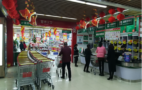 超市位于济阳县城新老城区交界区域安大城市广场地下一层,紧邻县政府、在建的县文化艺术中心,是济阳县老百姓集休闲、购物于一体的现代化购物场所。门店总建筑面积1万余平米,其中仓库面积3000平米,卖场面积7000平米,经营商品一万余个单品 。