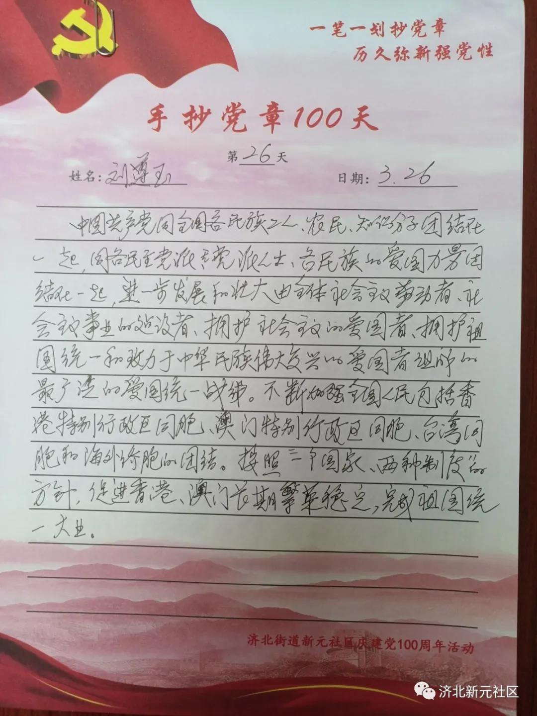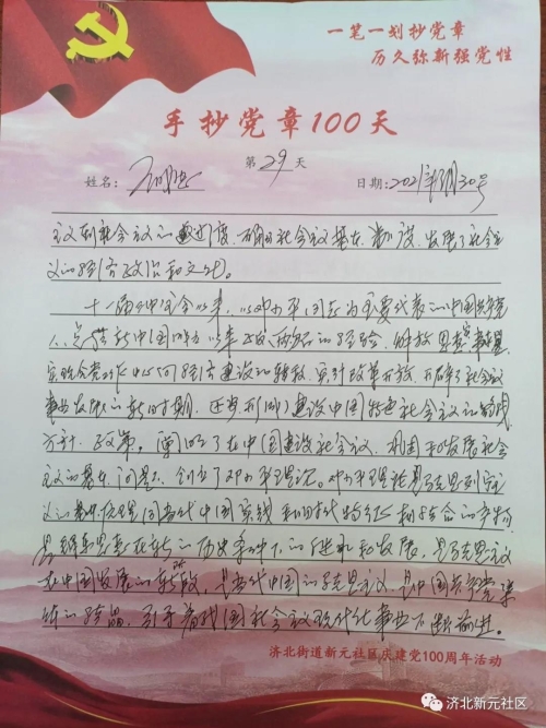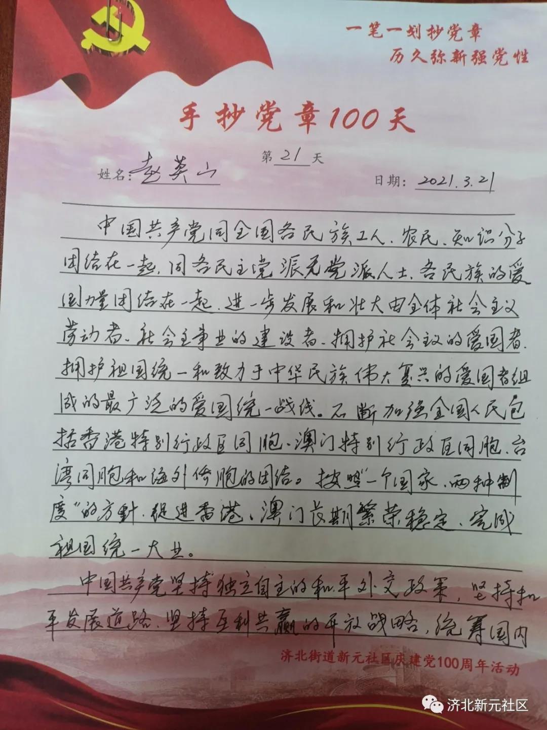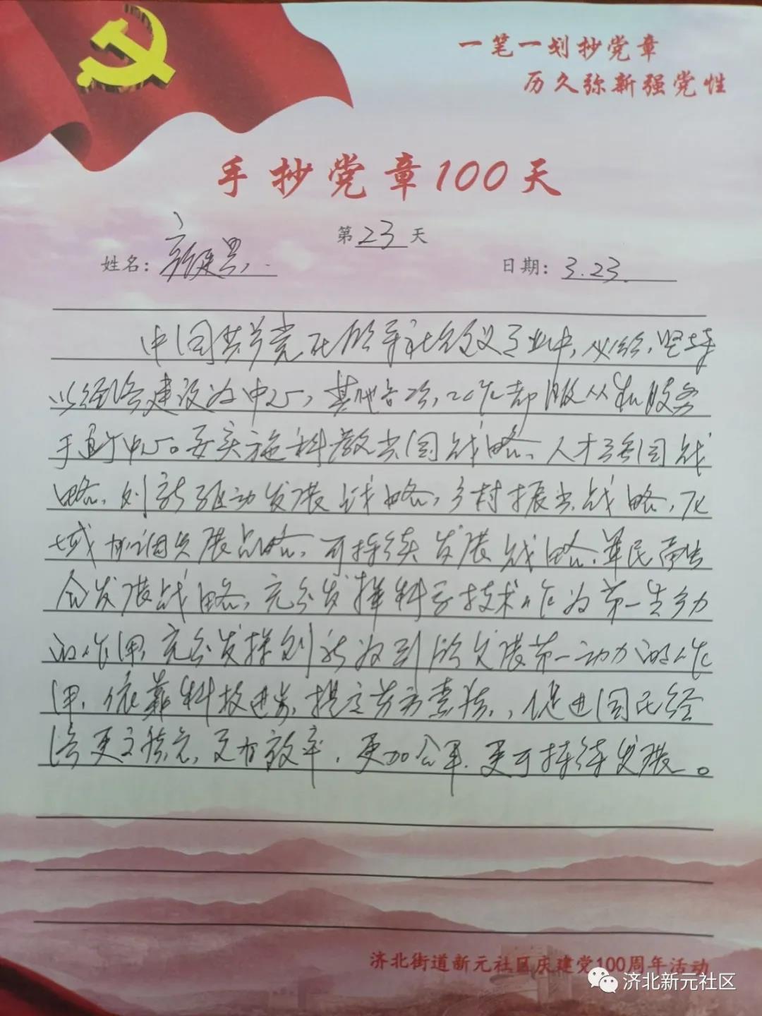 济北街道新元社区迎百年 党章中的党史一笔一划抄党章 历久弥新强党性 第三期