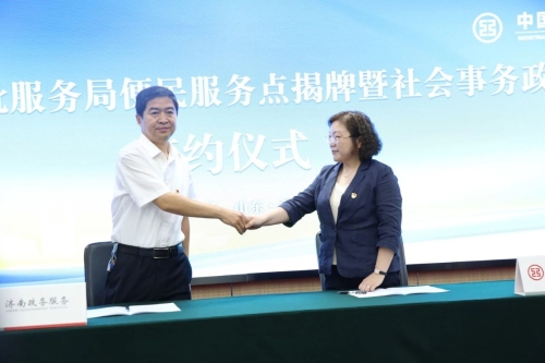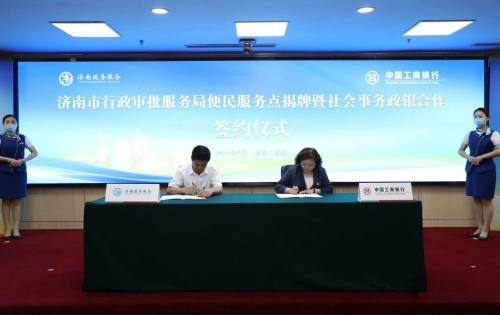 7月20日上午,济南市行政审批服务局(驻银行营业厅)便民服务点揭牌暨社会事务政银合作签约仪式举行。济阳区行政审批服务局主要负责同志、分管负责同志及相关工作人员参加。