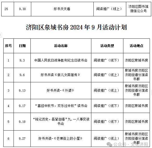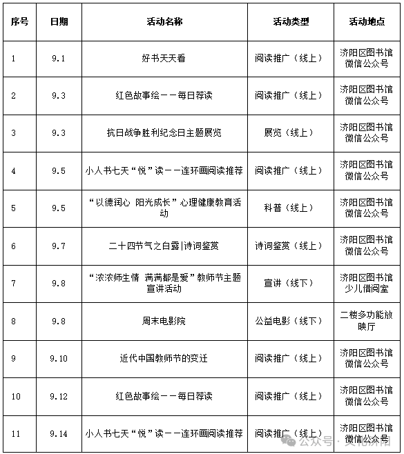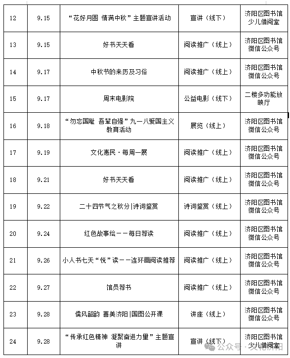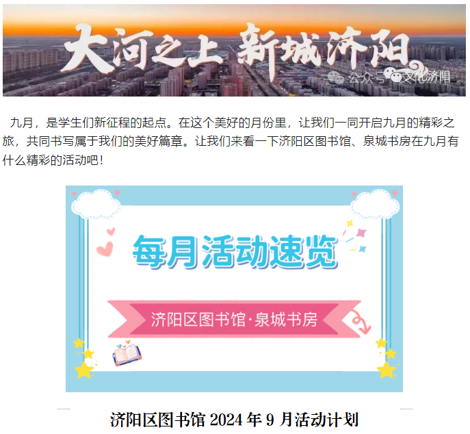 【活动预告】济阳区图书馆9月活动预告