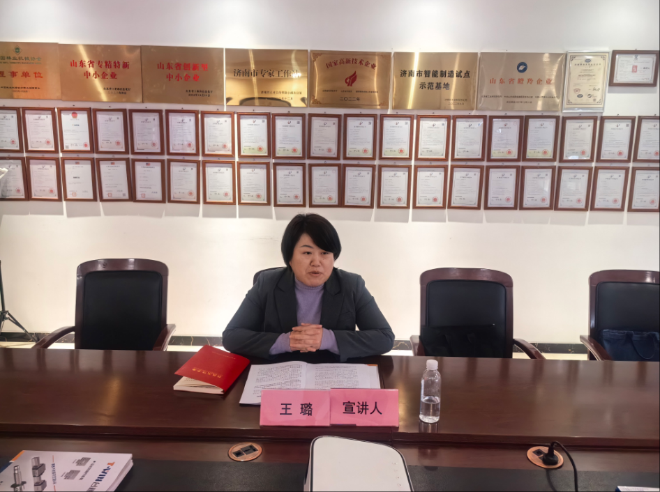 为全面深入学习领会党的二十届四中全会精神,12月16日,区委宣讲团成员、区科技局党组书记王璐到山东台稳精密机械有限公司作宣讲报告,并与大家互动交流。