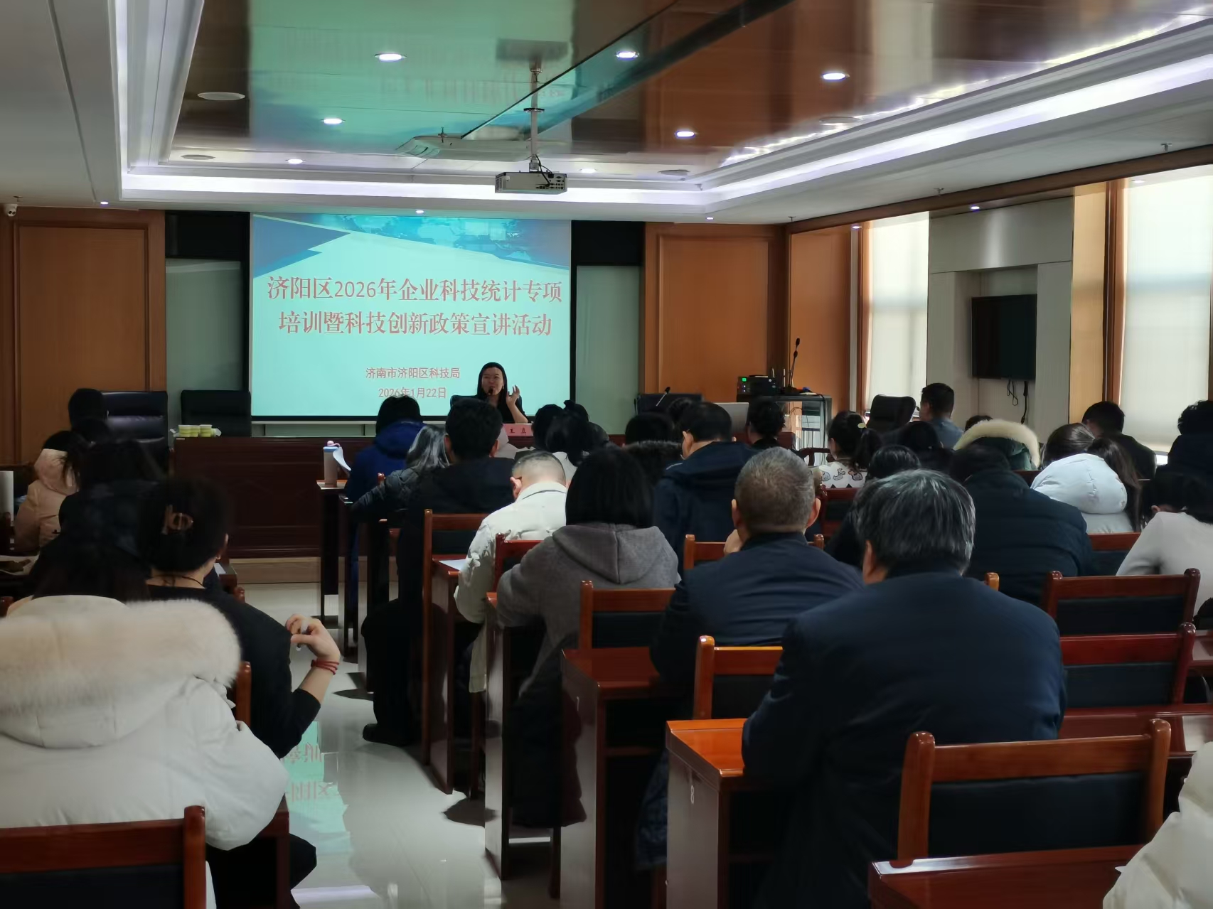 为进一步提升我区科技统计工作水平,夯实科技创新数据基础,助力企业高质量完成好2026年科技统计工作,最大程度享受省、市最新科技创新政策,近期,济阳区科技局针对济北开发区、各镇街规上企业开展了两场科技统计专项培训暨科技创新政策宣讲活动,济北开发区、各镇街分管科技工作的负责同志,规上工业企业、规上建筑业、规上服务业科研人员等共150余人参加。
