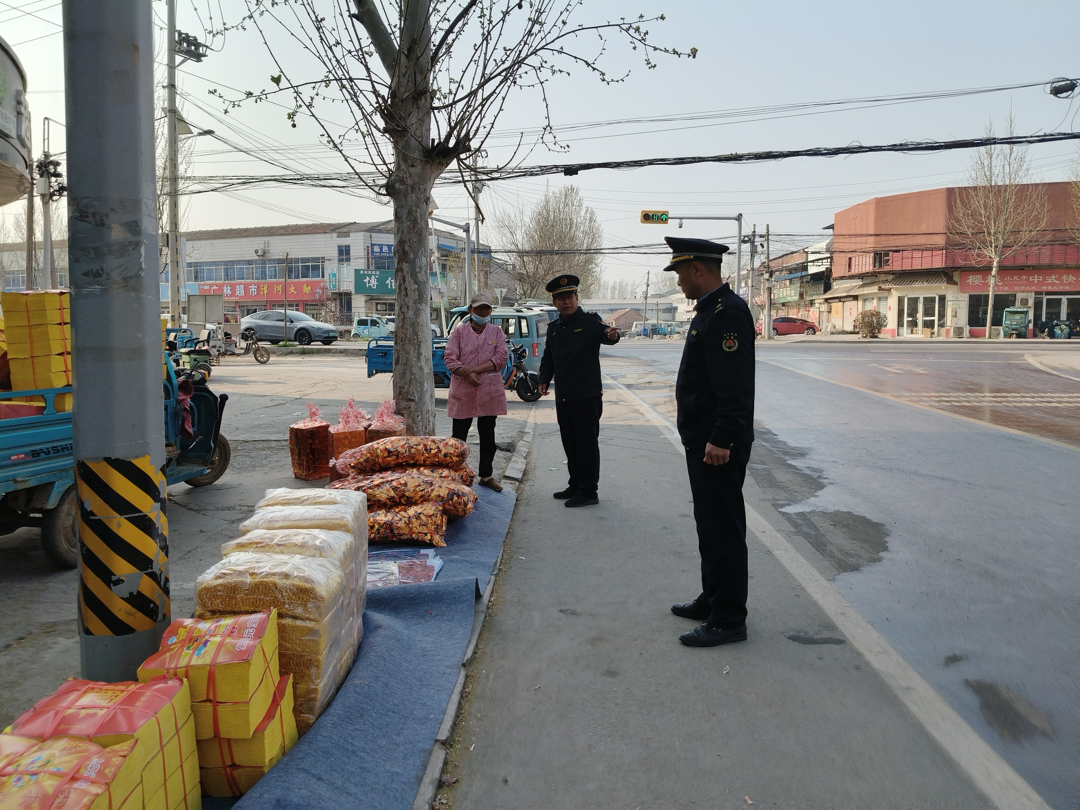 此次整治行动紧盯辖区主要大街、241省道周边等重点区域,针对流动摊贩违规摆摊设点、沿街商户店外经营、占道售卖祭扫用品等违规行为,采取“定点管控+错峰巡查+突击整治”相结合的模式,实现全方位、无死角监管。执法人员对违规占道经营的摊贩、商户逐一进行劝导教育,责令立即整改、撤离现场。