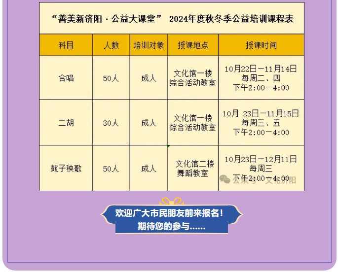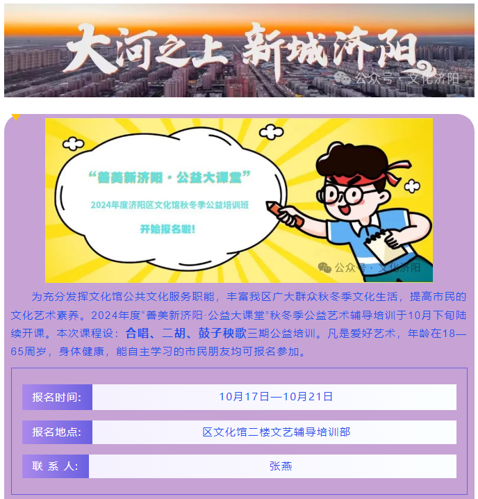 【善美新济阳·公益大课堂】2024年度济阳区文化馆秋冬季公益培训开始报名啦!