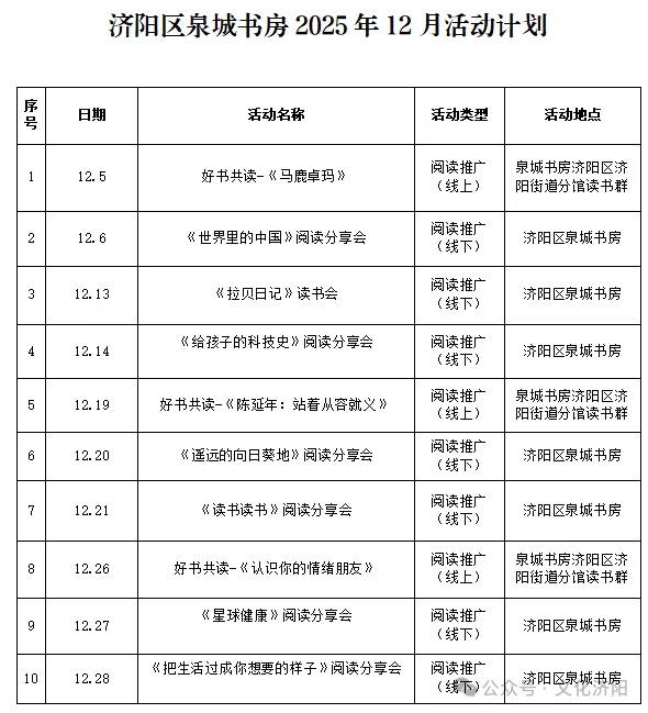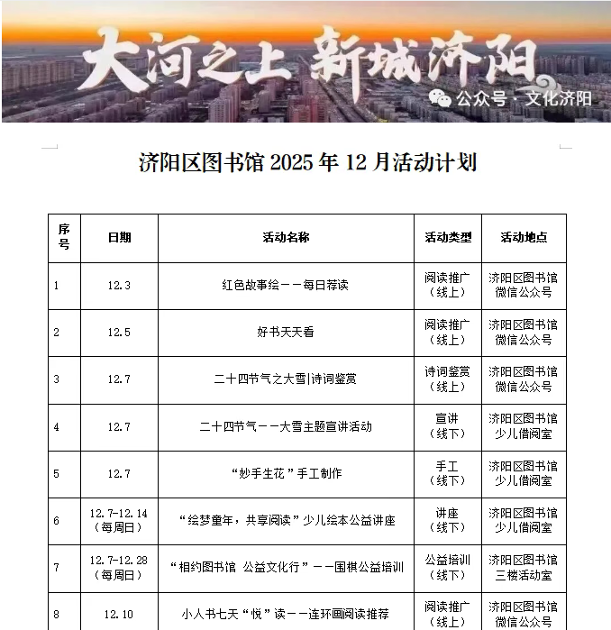 【活动预告】济阳区图书馆&济阳区泉城书房十二月活动预告