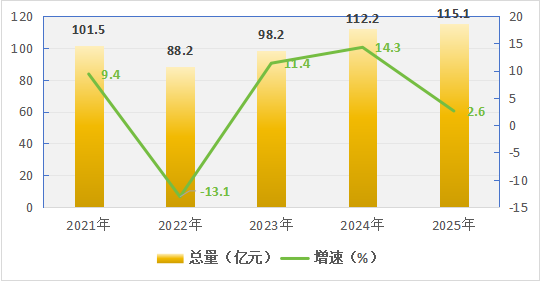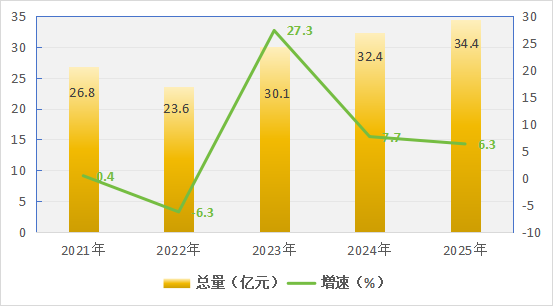 图3 2021-2025年全区社会消费品零售总额及增速
