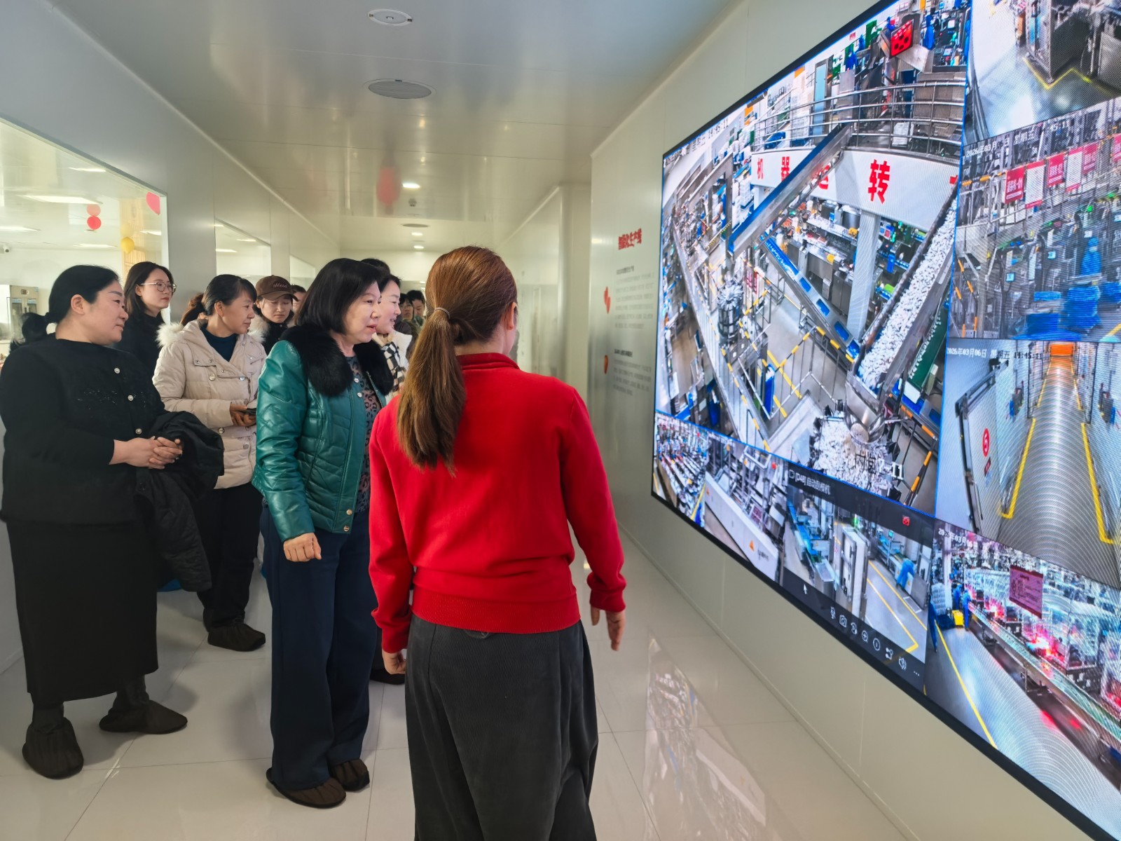 在讲解员的带领下,透过明亮的参观走廊,女职工们近距离观摩了山楂食品的智能化生产车间。从原料的精选分级,到全自动清洗、去核、蒸煮,再到标准化烘焙与智能包装,大家亲眼见证了一颗颗小小的山楂如何蝶变为畅销全国的“明星单品”。现代化的生产场景令人震撼。整个厂区干净整洁,各道工序衔接顺畅,严格的管理标准贯穿每一个环节,充分展现了食品企业对安全与品质的绝对重视。