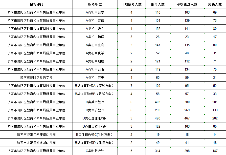 2026年济阳区教育系统所属事业单位招聘报名人数统计(截止到2026年4月24日16:17分)