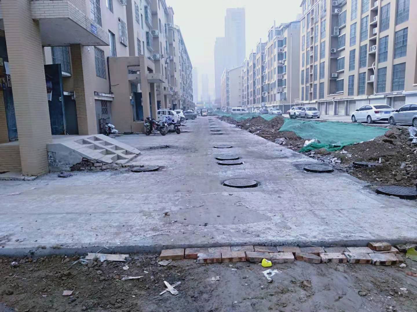目前,三发舜鑫苑老旧小区改造项目进展顺利,作业面楼南、楼北混凝土路面已经铺设完毕,不影响居民出行安全。