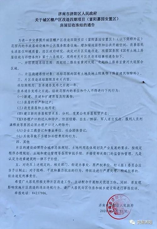 我区张贴四期项目房屋征收冻结通告